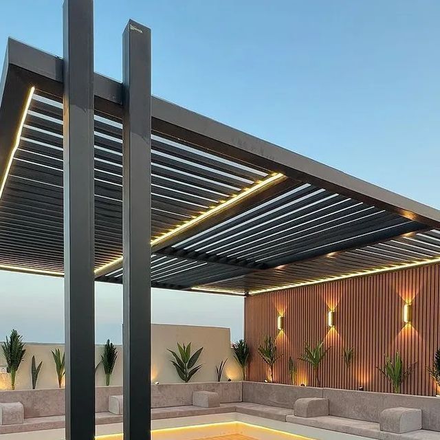 مع هذه المظلات، تتحول الحديقة إلى غرفة معيشة مفتوحة في الهواء الطلق، مما يزيد من قيمة العقار ويمنح تجربة استجمام لا تُنسى.
